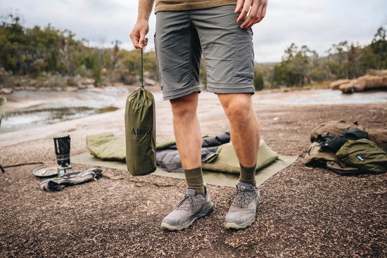 This lightweight groundsheet can be conveniently stashed in the Ultralight Camp Chair drawstring pouch.