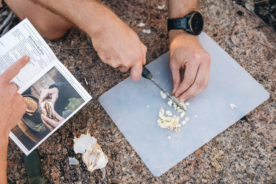 Our Ultralight Cutting Board doubles as a clean, flat surface for meal prep, crafted from Food Grade HDPE and expertly designed to protect the edge on your knife.